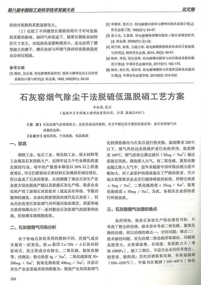 《中國鋁工業科學技術發展大會》石灰窯煙(yān)氣除塵幹法脫硫低(dī)溫脫硝工藝方案