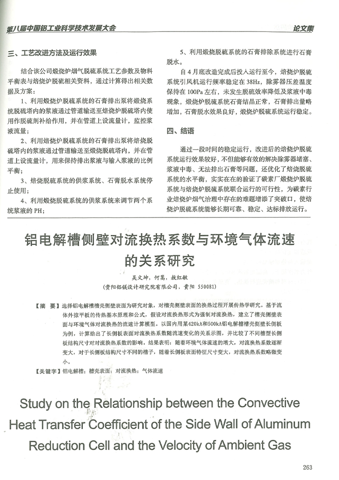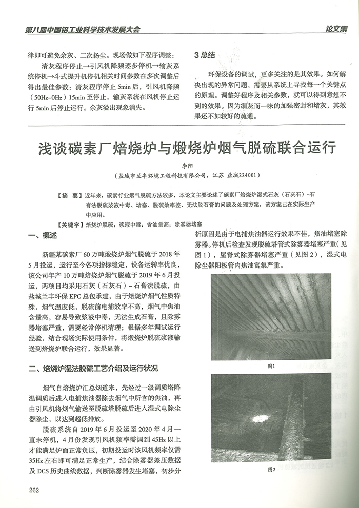 《中國鋁工業科學技術發展大會》淺談碳素廠焙燒爐與煅燒爐煙(yān)氣脫硫聯合運行