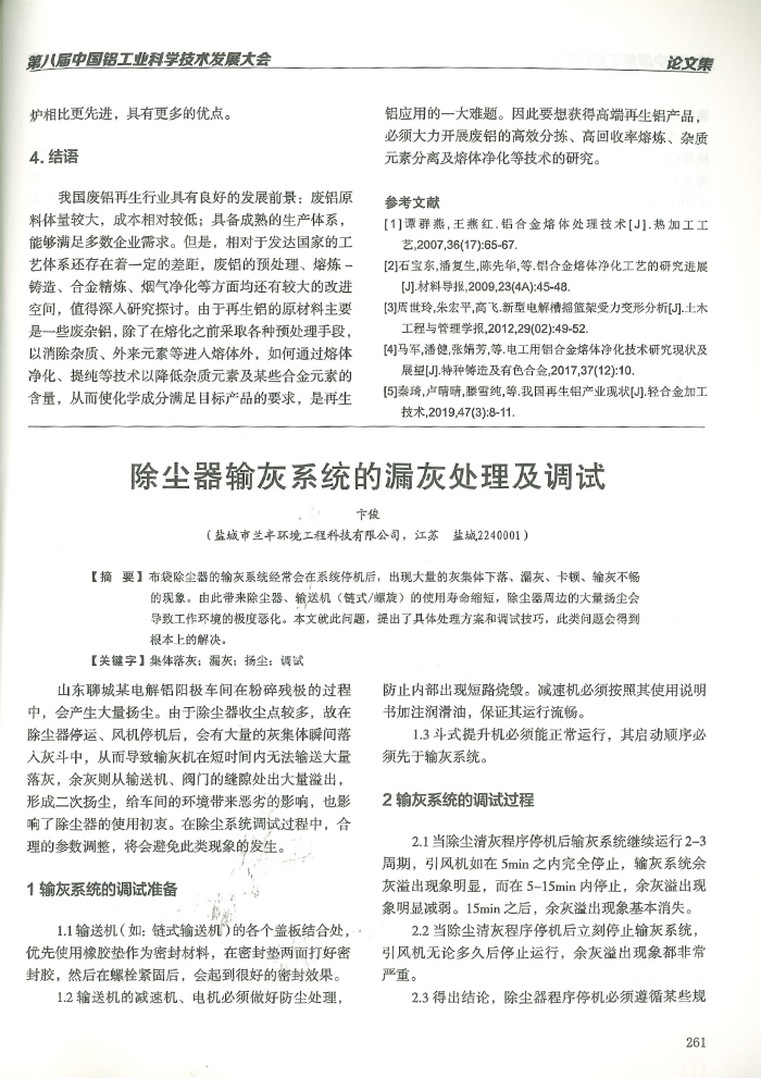 《中國鋁工業科學技術發展大會》除塵器(qì)輸灰系統的漏灰處理(lǐ)及調試